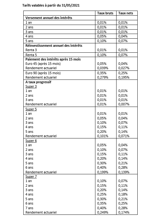 L’intérêt est fixé d’avance. Il est soit versé à des moments préalablement déterminés, soit capitalisé. - Choix entre différentes durées