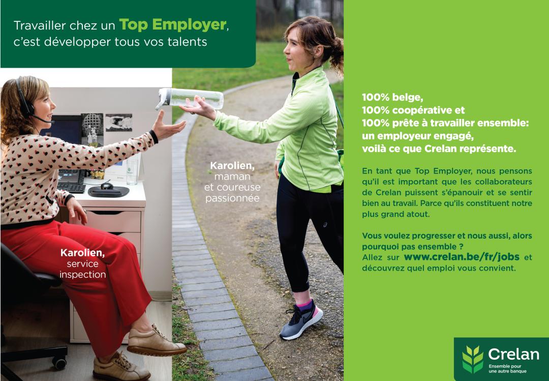 Le 25 janvier, pour la sixième fois consécutive, nous avons reçu la fantastique nouvelle de la reconnaissance de Crelan comme Top Employer.