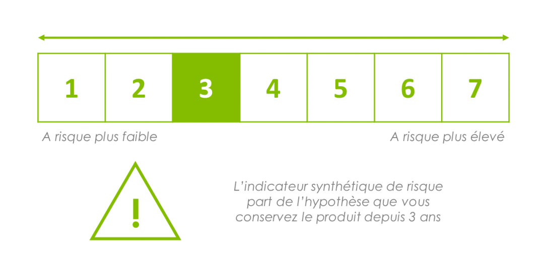 L'indicateur synthétique de risque part de l'hypothèse que vous conservez le Produit jusqu'à l'échéance de la période de détention recommandée (3 ans). Le risque réel peut être très différent si vous optez pour une sortie avant échéance, et vous pourriez obtenir moins en retour. Ce niveau d'indicateur reflète le profil de risque et de rendement du Produit compte tenu des prises de position de la gestion sur les différentes classes d'actifs action, taux et change dans le cadre de la marge de manœuvre préalablement définie. L’indicateur synthétique de risque permet d'apprécier le niveau de risque de ce Produit par rapport à d’autres. Il indique la probabilité que ce Produit enregistre des pertes en cas de mouvements sur les marchés ou d'une impossibilité de notre part de vous payer. Le capital n'est pas garanti.