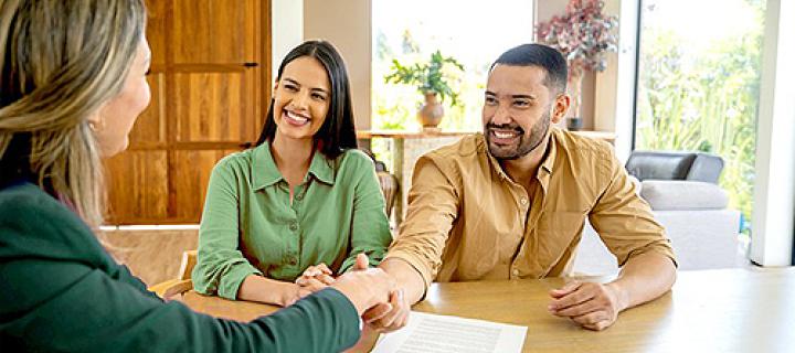 Makelaar toont het appartement aan een geïnteresseerd koppel
