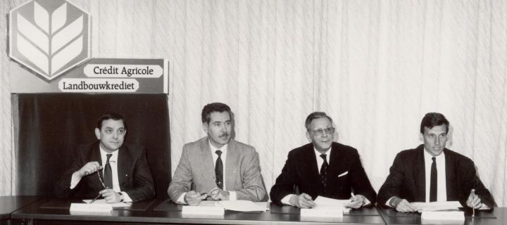 De jaren ’90 markeren het begin van de privatisering van Landbouwkrediet. In 1993 worden de coöperatieve kassen mede-aandeelhouder, gevolgd door Swiss Life en Bacob. In 1998 verhuist de bank naar haar nieuwe hoofdzetel in Anderlecht, een symbolische stap in haar modernisering.