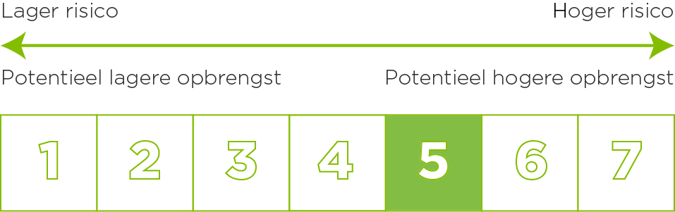 De synthetische risico-indicator gaat ervan uit dat u het Product aanhoudt tot het einde van de aanbevolen periode van bezit (4 jaar). Het daadwerkelijke risico kan sterk variëren indien u in een vroeg stadium uitstapt en u kunt minder terugkrijgen. Dit indicatorniveau weerspiegelt het risico- en rendementsprofiel van het product, rekening houdend met de ingenomen beheerposities in de verschillende categorieën aandelen, rentevoeten en deviezen in het kader van de vooraf bepaalde manoeuvreerruimte. De synthetische risico-indicator is een richtlijn voor het risiconiveau van dit product ten opzichte van andere producten. De indicator laat zien hoe groot de kans is dat beleggers verlies lijden op het Product wegens marktontwikkelingen of doordat er geen geld voor betaling is. Het kapitaal is niet gegarandeerd.
